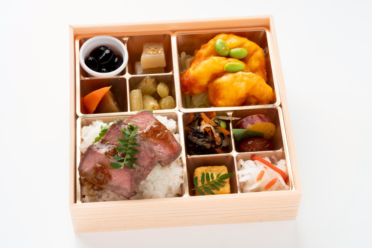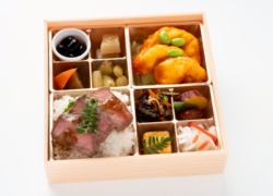料理の盛り付けをより豪華に引き立てる高級折箱を使用しています。積み重ねや軽度の衝撃にも耐えることができ、見栄えも良いので接待や勉強会、説明会などにピッタリです。